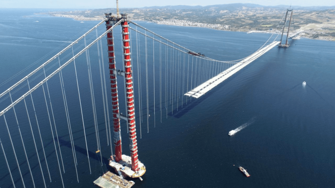 中国企业还为土耳其1915恰纳卡莱大桥的建设作出了贡献,中国蜀道集团下属四川路桥中标了大桥的钢箱梁安装分项工程。该大桥连接欧亚两洲,于今年3月通车。